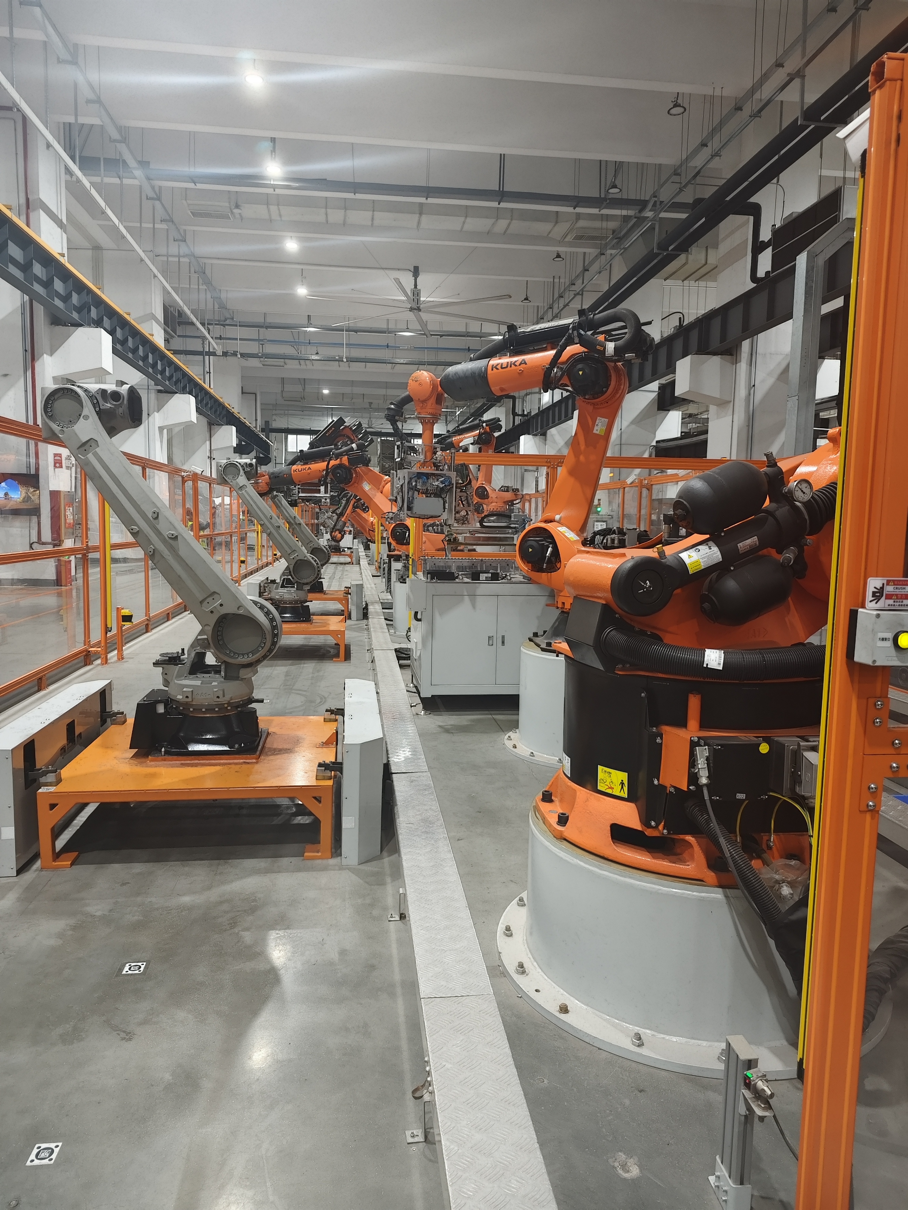 国内首个实现“机器人生产机器人”的规模化基地内,一条35米长的全自动化产线尤为特殊:12台库卡重型机器人化身“工人”,以毫秒级同步协作,24小时不间断作业,平均每30分钟就能下线一台工业机器人。
