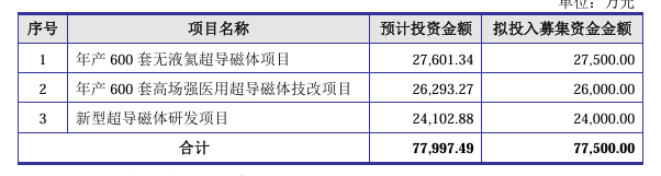 公司本次募集资金将投资于年产600套无液氦超导磁体项目、年产600套高场强医用超导磁体技改项目、新型超导磁体研发项目。公司募集资金围绕公司的主营业务展开,聚焦国家战略和重大需求,进一步加大研发创新投入,进一步完善产业链和产品结构,增强公司产品和技术的竞争力。