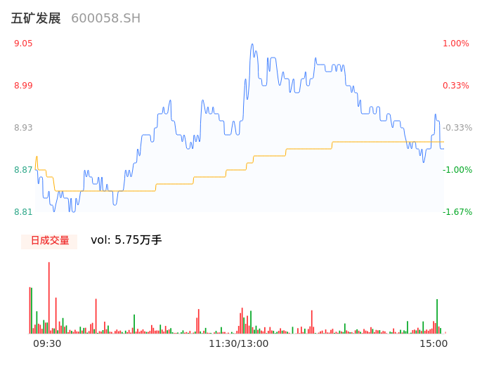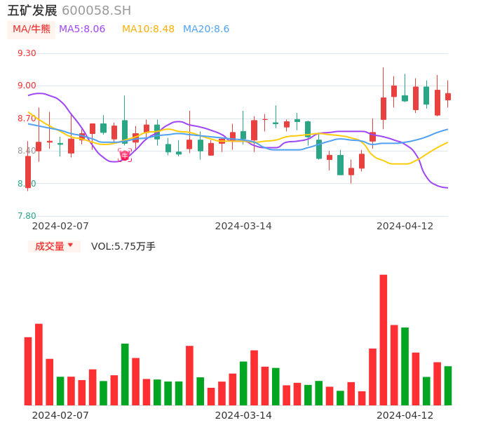 04月12日,五矿发展收报8.93,股价涨幅-0.33%,成交金额5127.07万元,换手率0.54%。