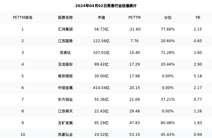 从估值角度看:五矿发展最新市盈率PETTM为47.83,在行业内排名8/14,处于60.08分位。