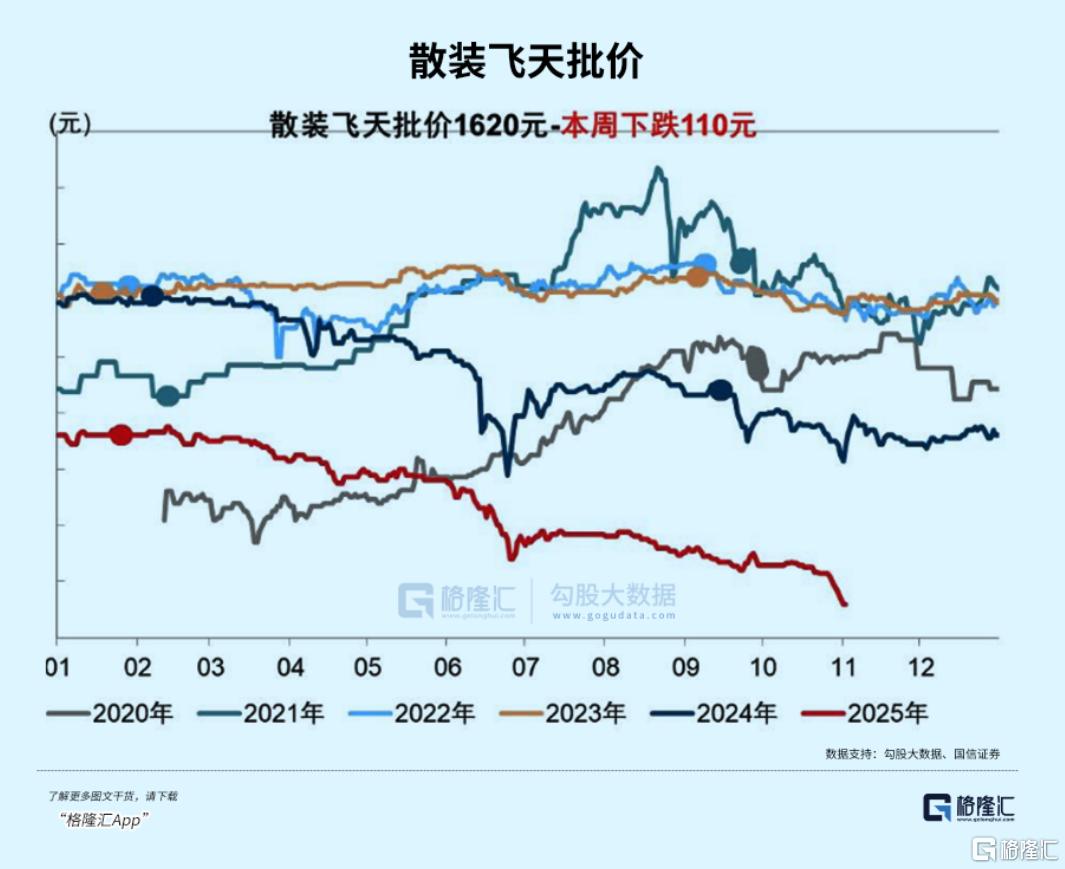 53度飞天茅台散瓶批发价跌破1600元,报1640元的历史新低,较年初跌超31%。