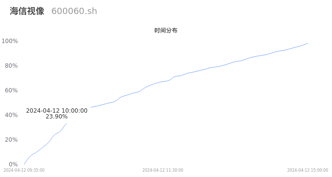 600060海信视像2024年04月12日成交16.62万手,成交金额4.29亿元,相较昨日缩量1.57万手,换手率1.29%,成交清淡。
