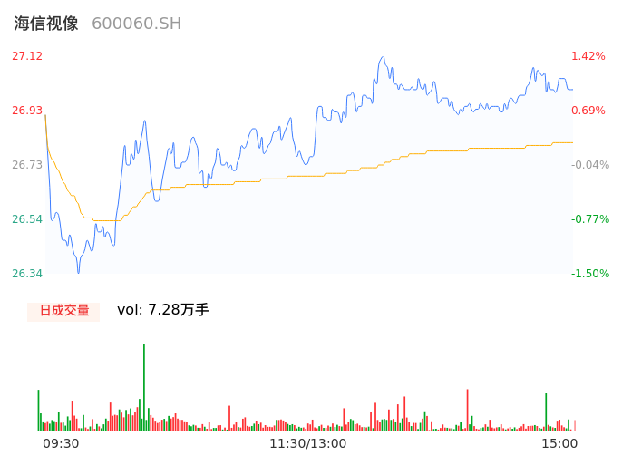 04月24日,海信视像收报27.07,股价涨幅1.23%,成交金额1.95亿元,换手率0.57%。
