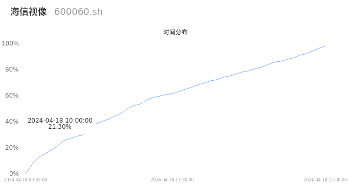 600060海信视像2024年04月18日成交10.06万手,成交金额2.75亿元,相较昨日缩量1.05万手,换手率0.78%,成交清淡。