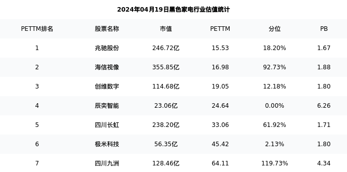 从估值角度看:海信视像最新市盈率PETTM为16.98,在行业内排名2/11,处于92.73分位。