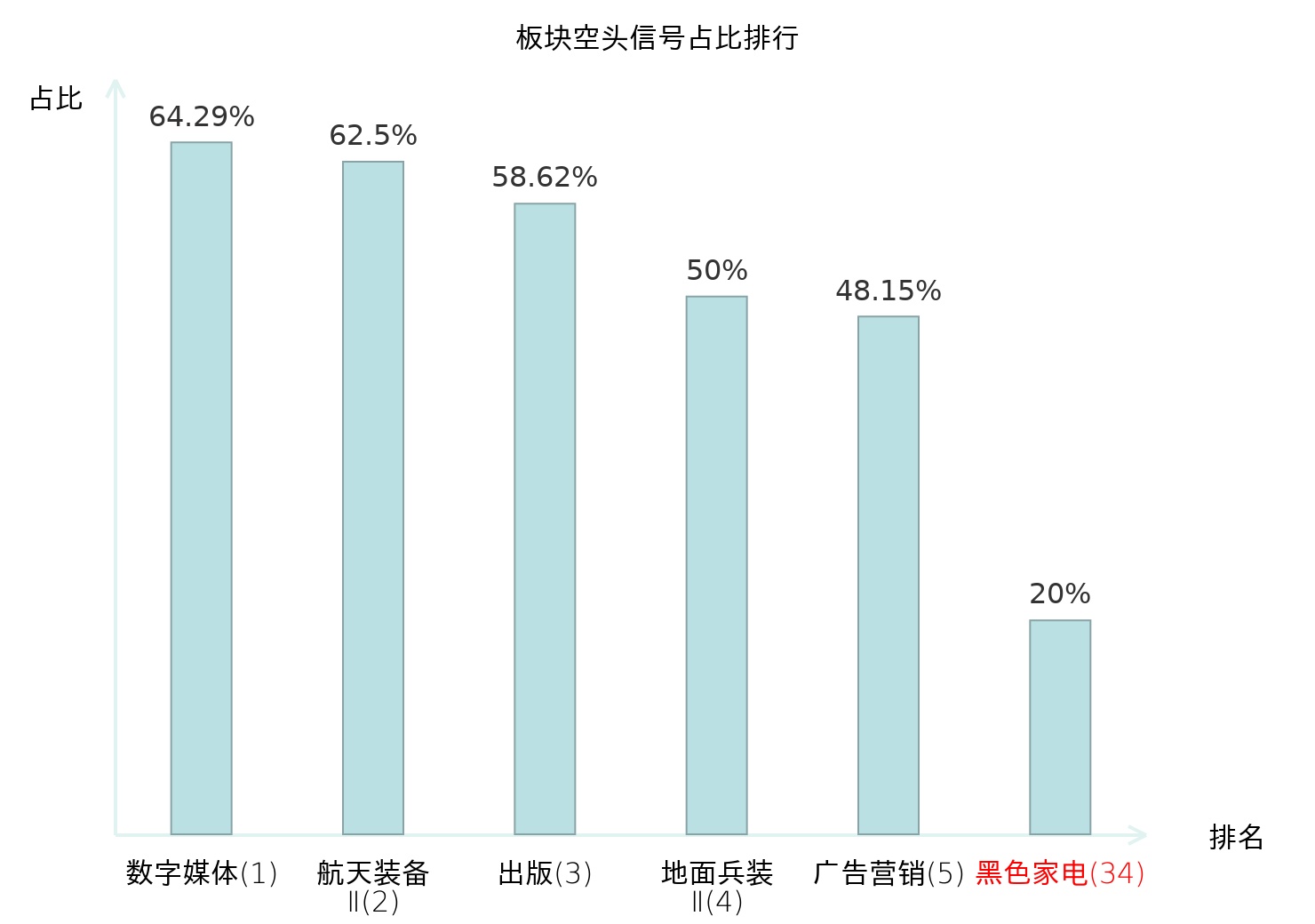 全市场所有行业板块中主力空头信号占比排名中,数字媒体板块位居第一。出版板块名次提升最快,较昨日上升116位。