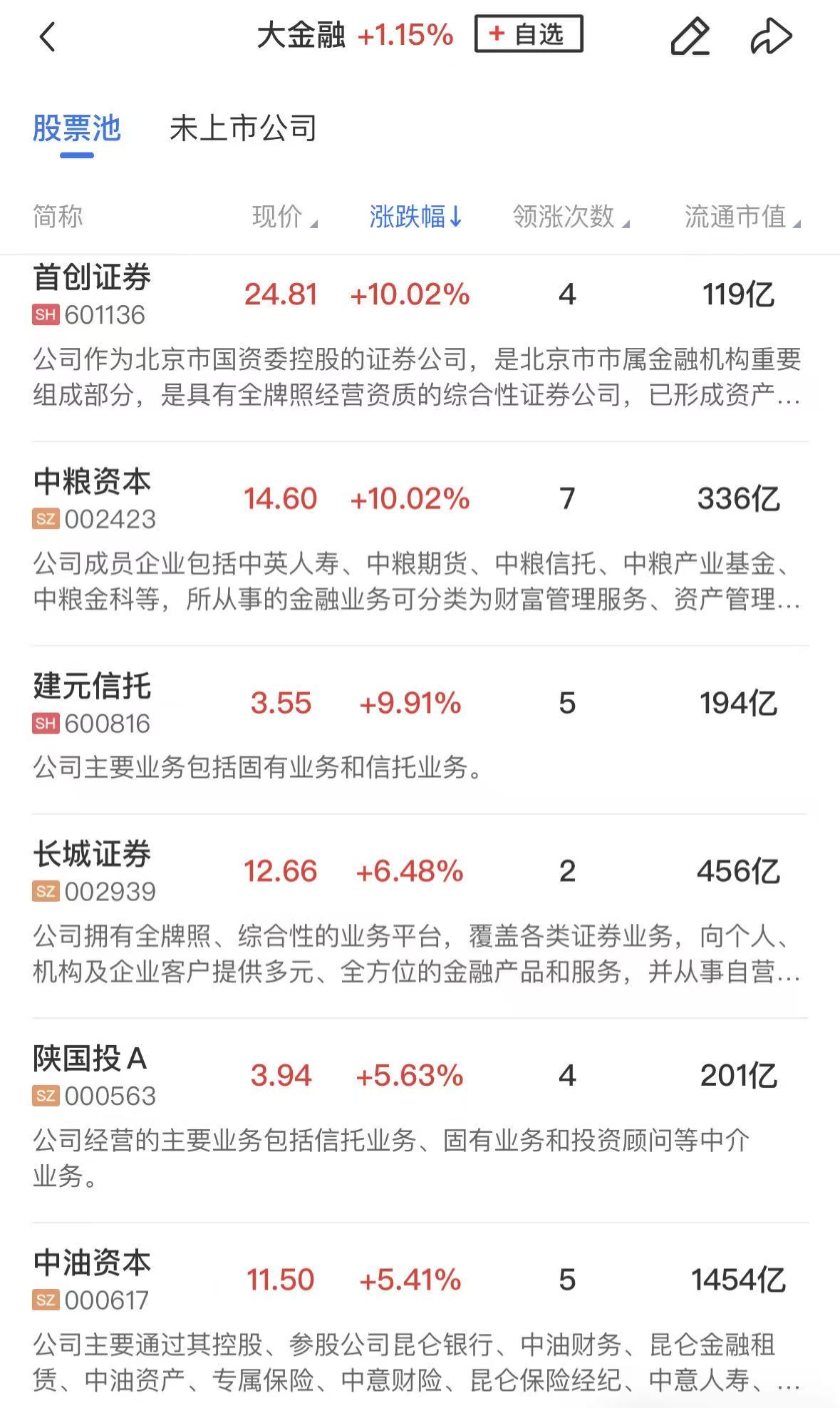 大金融板块异动拉升,指南针涨超10%,创历史新高,汇金股份、中粮资本、首创证券涨停,长城证券、陕国投、信达证券、国投资本等跟涨。