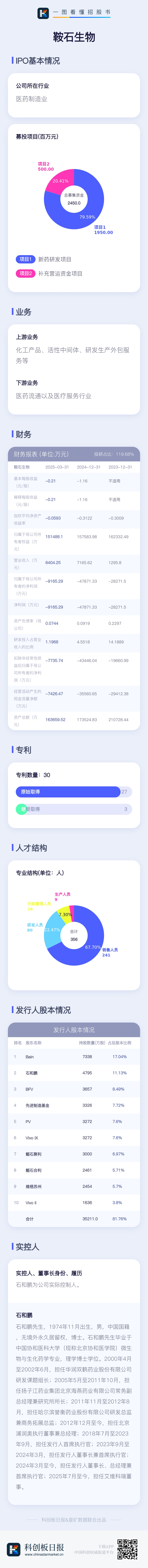 回看石和鹏过往履历,据鞍石生物招股书披露,2000年4月至2002年6月,其担任华润双鹤药业股份有限公司研发课题组长;2005年5月至2011年10月,其担任扬子江药业集团北京海燕药业有限公司常务副总经理兼研究所所长;2011年11月至2012年8月,其担任哈尔滨誉衡药业股份有限公司研发总监兼商务拓展总监;2012年12月至今,其担任北京浦润奥执行董事兼总经理;2018年7月至2023年9月,担任鞍石生物首席执行官;2023年9月至2024年3月,担任鞍石生物董事长兼首席执行官;2024年3月至今,担任鞍石生物董事长、总经理兼首席执行官;2025年7月至今,其担任艾维科瑞董事。