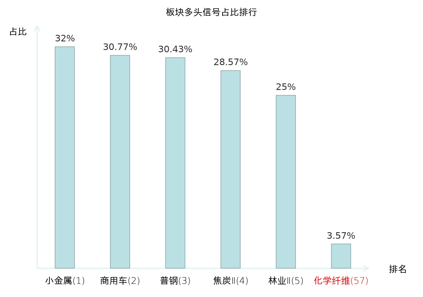全市场所有行业板块中主力多头信号占比排名中,小金属板块位居第一。林业Ⅱ板块名次提升最快,较昨日上升121位。