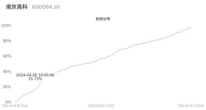 600064南京高科2024年04月26日成交16.81万手,成交金额1.07亿元,相较昨日放量8.41万手,换手率0.97%,成交清淡。