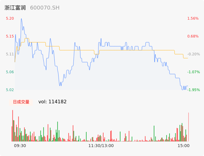 04月26日,浙江富润收报5.03,股价涨幅-1.76%,成交金额5823.78万元,换手率2.25%。
