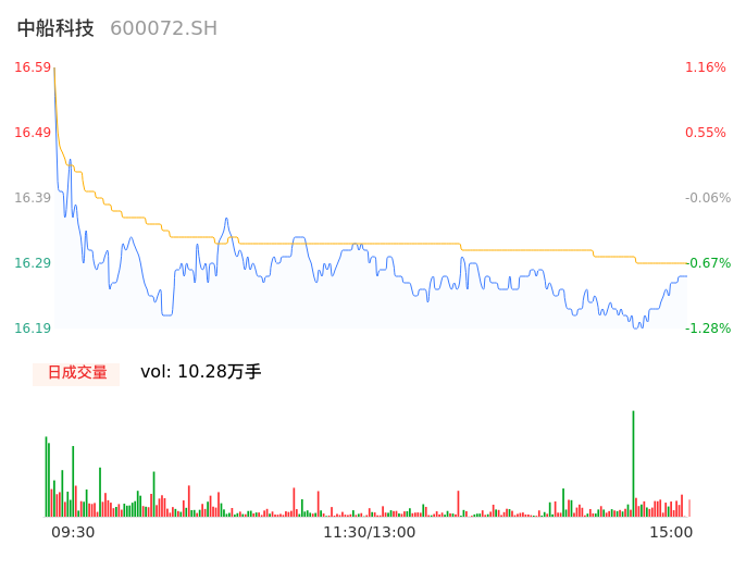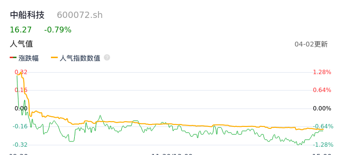 04月02日,中船科技收报16.27,股价涨幅-0.79%,成交金额1.67亿元,换手率1.40%。
