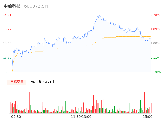 04月11日,中船科技收报15.68,股价涨幅1.29%,成交金额1.48亿元,换手率1.28%。