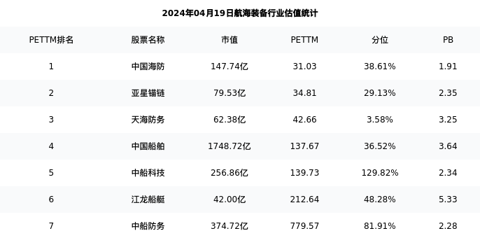 从估值角度看:中船科技最新市盈率PETTM为139.73,在行业内排名5/11,处于129.82分位。
