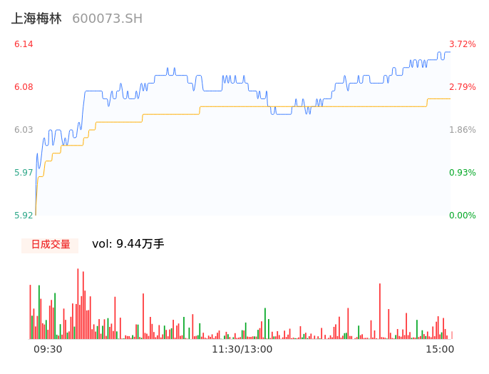 04月17日,上海梅林收报6.14,股价涨幅3.72%,成交金额5729.06万元,换手率1.01%。