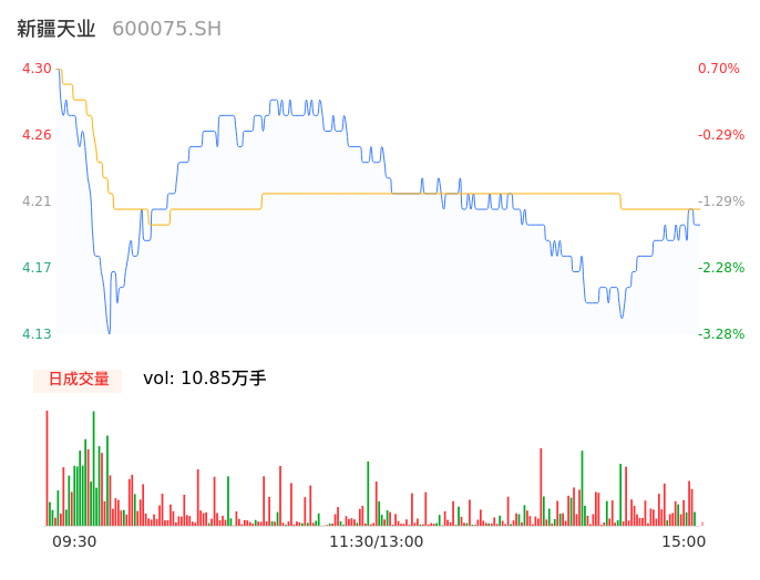 04月15日,新疆天业收报4.20,股价涨幅-1.64%,成交金额4568.26万元,换手率0.64%。