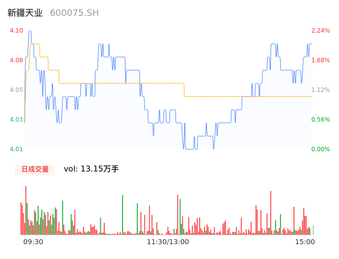 04月17日,新疆天业收报4.08,股价涨幅1.75%,成交金额5331.53万元,换手率0.77%。