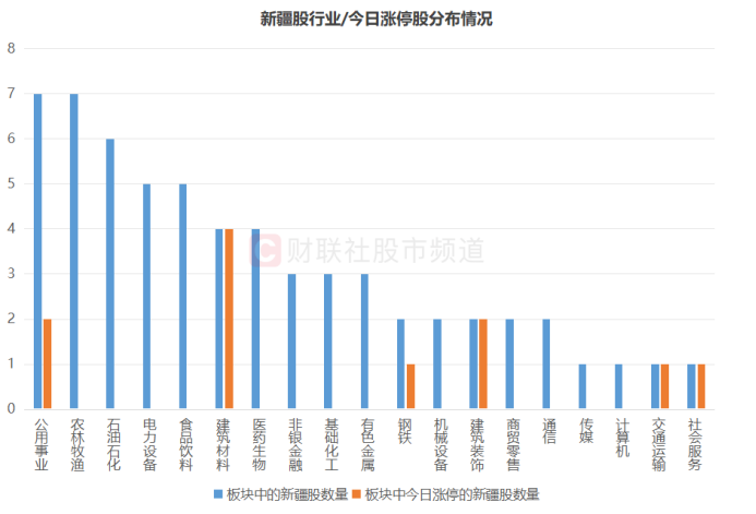 注:新疆股行业/今日涨停股分布情况(截至8月8日收盘)