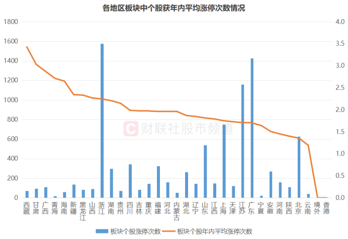 注:各地区板块中个股获年内平均涨停次数情况(截至8月8日收盘)