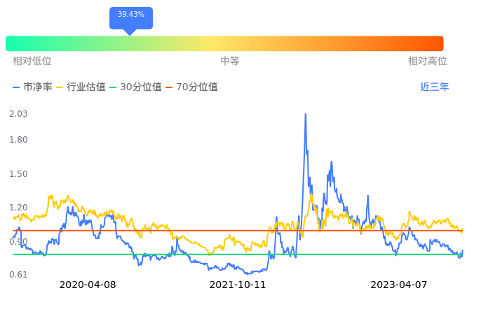 宋都股份当前市净率PB为0.83,在所属的房地产开发中,市净率PB排37,前五名分别为荣盛发展市净率0.23、金科股份市净率0.28、世茂股份市净率0.32、中南建设市净率0.36、福星股份市净率0.36。宋都股份当前市净率PB为0.83,超过近3年39.43%的历史数据。