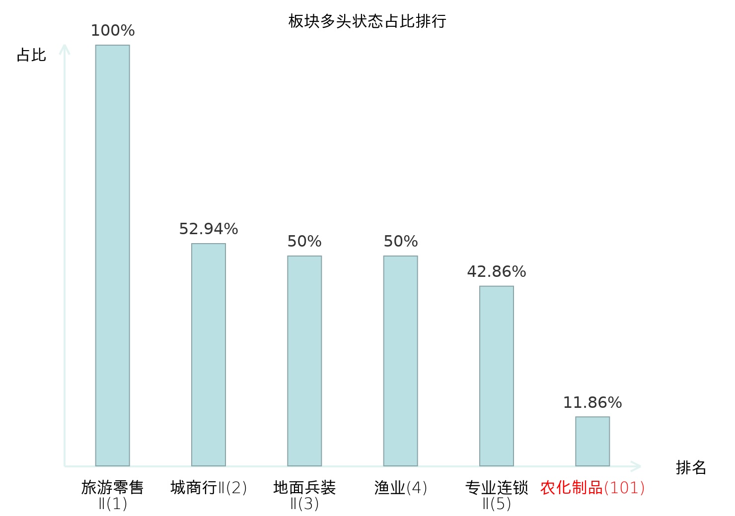 全市场所有行业板块中主力多头状态占比排名中,旅游零售Ⅱ板块位居第一。旅游及景区板块名次提升最快,较昨日上升69位。