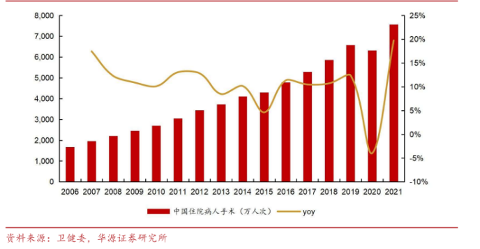 图表3:2006-2021年中国住院病人手术情况