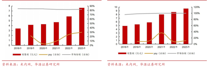图表6:2018-2023年恩华咪达唑仑样本医院销售情况(左)2018-2023年恩华依托咪酯样本医院销售情况(右)