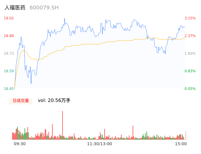 04月15日,人福医药收报18.96,股价涨幅2.82%,成交金额3.88亿元,换手率1.34%。