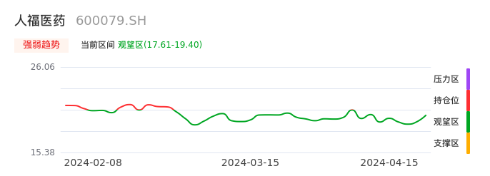 我们来看一下该股的九方特色指标强弱趋势的情况:人福医药自03月05日从持仓区下穿到观望区。股价近期持续下跌后,短期出现止跌迹象。后续重点关注能否再次站上多空分界点:19.40元。如未能有效突破则可能进入新一轮空头行情。