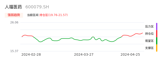 我们来看一下该股的九方特色指标强弱趋势的情况:人福医药自04月17日从观望区上穿到持仓区。股价近期在多头区域持续强势上扬,上升动能仍较为充足,可积极关注。后续重点关注上方压力位:21.57元是否能突破上攻。
