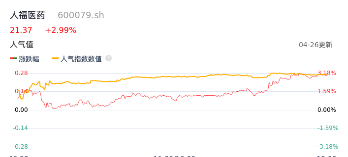 04月26日,人福医药收报21.37,股价涨幅2.99%,成交金额5.28亿元,换手率1.63%。