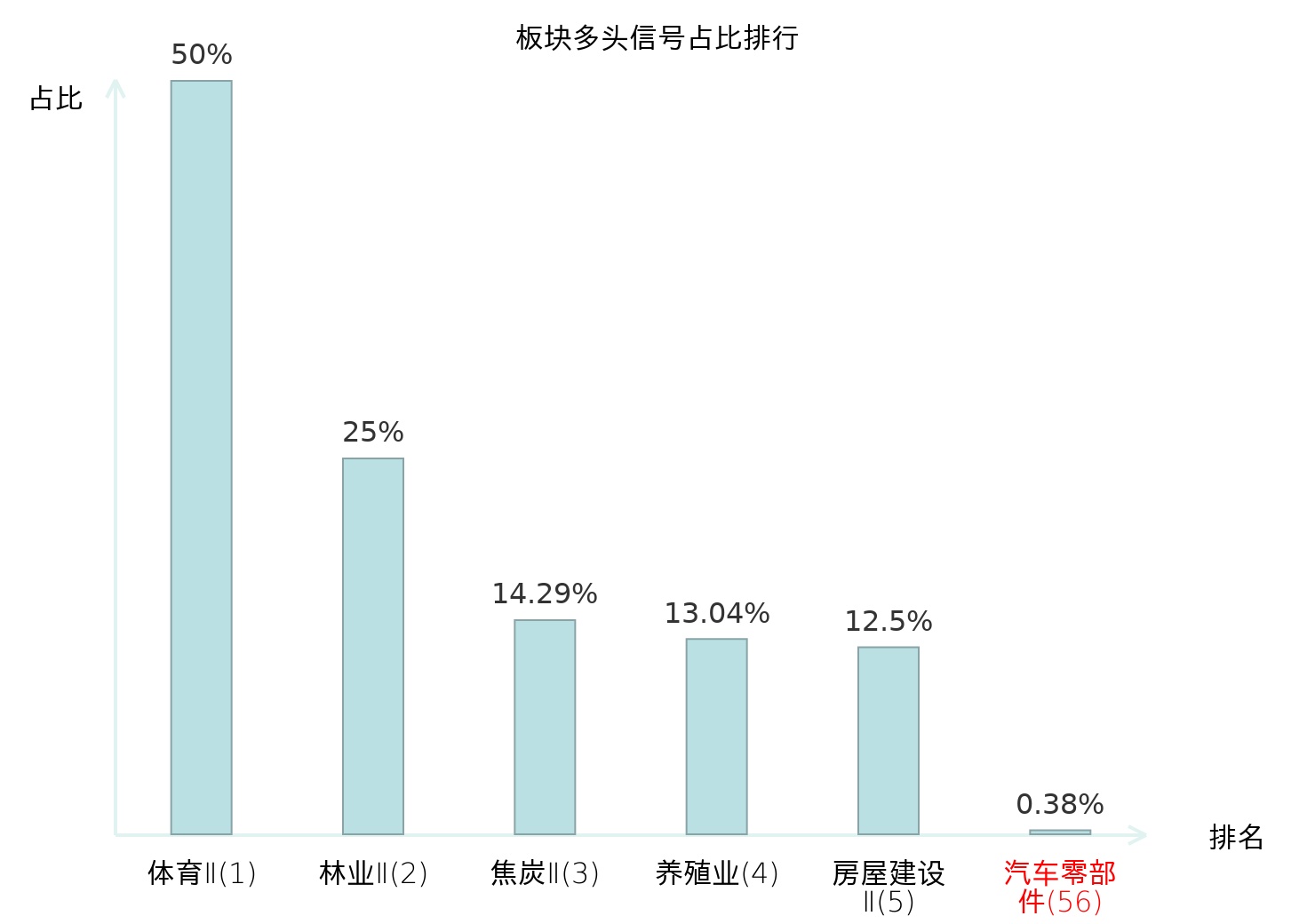 全市场所有行业板块中主力多头信号占比排名中,体育Ⅱ板块位居第一。体育Ⅱ板块名次提升最快,较昨日上升130位。