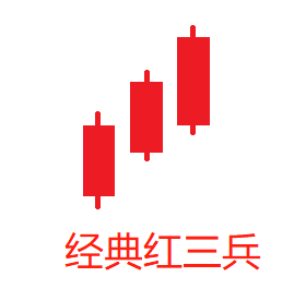 “红三兵”形态是一种极为常见的三日K线组合形态,它由连续出现的三根中小阳线组合而成,是一种经典的底部看涨K线形态。