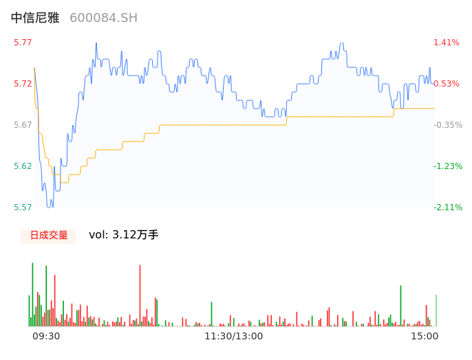 04月22日,中信尼雅收报5.71,股价涨幅0.35%,成交金额1774.80万元,换手率0.28%。
