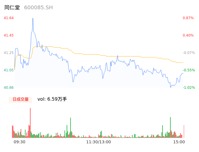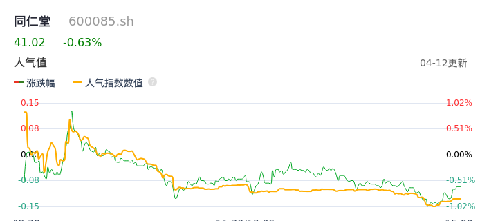 04月12日,同仁堂收报41.02,股价涨幅-0.63%,成交金额2.71亿元,换手率0.48%。