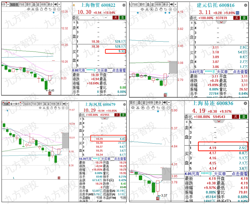 政策力度足够大,那么消息出来后必然会引发板块的群体异动。而板块率先涨停的个股,次日都出现了巨量封单: