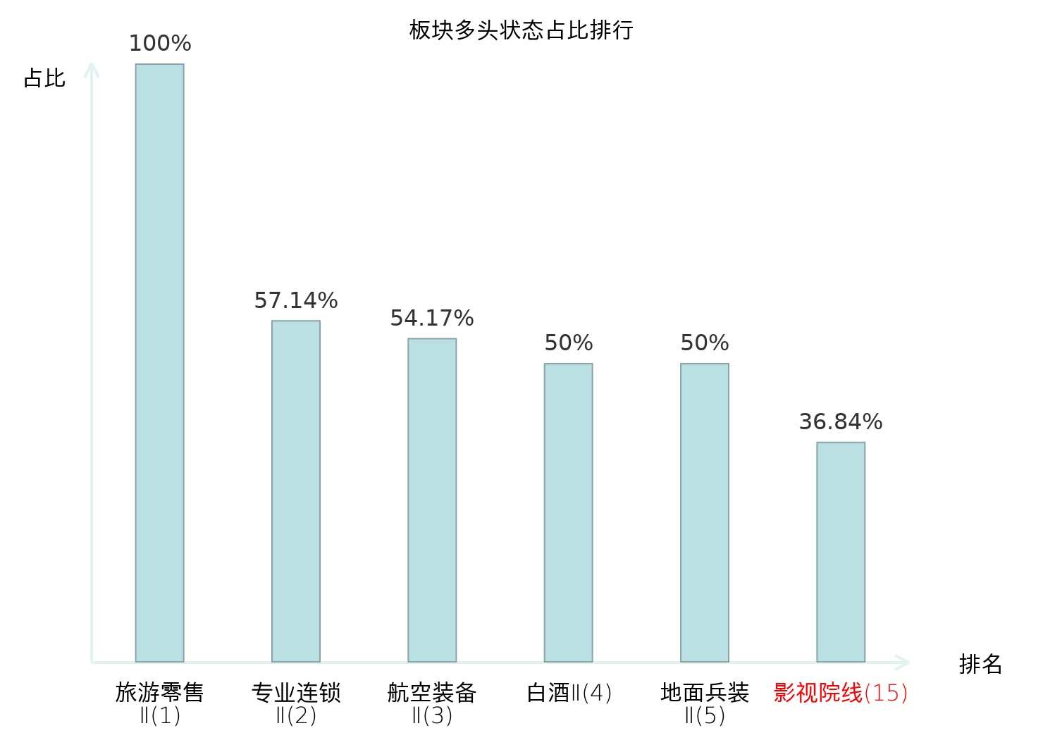 全市场所有行业板块中主力多头状态占比排名中,旅游零售Ⅱ板块位居第一。游戏Ⅱ板块名次提升最快,较昨日上升102位。