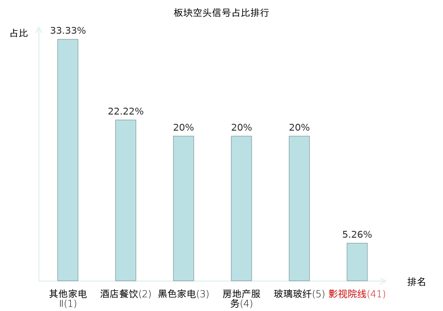 全市场所有行业板块中主力空头信号占比排名中,其他家电Ⅱ板块位居第一。家居用品板块名次提升最快,较昨日上升111位。