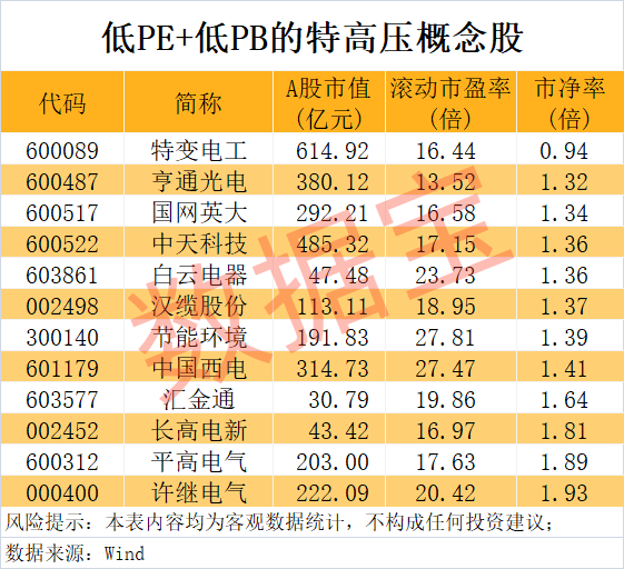 上述20只低市盈率的特高压概念股中,市净率(PB)低于2倍的有12只,包括特变电工、亨通光电、国网英大、中天科技、平高电气等。以平高电气为例,该公司今年一季度实现净利润3.58亿元,同比增长55.94%。一季度末,公司前十大流通股东出现多家险资身影,此外,社保基金107组合持仓市值超过1.8亿元。