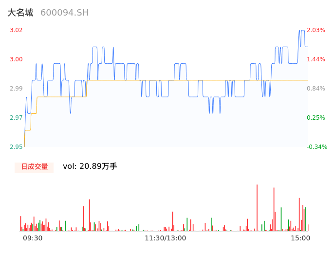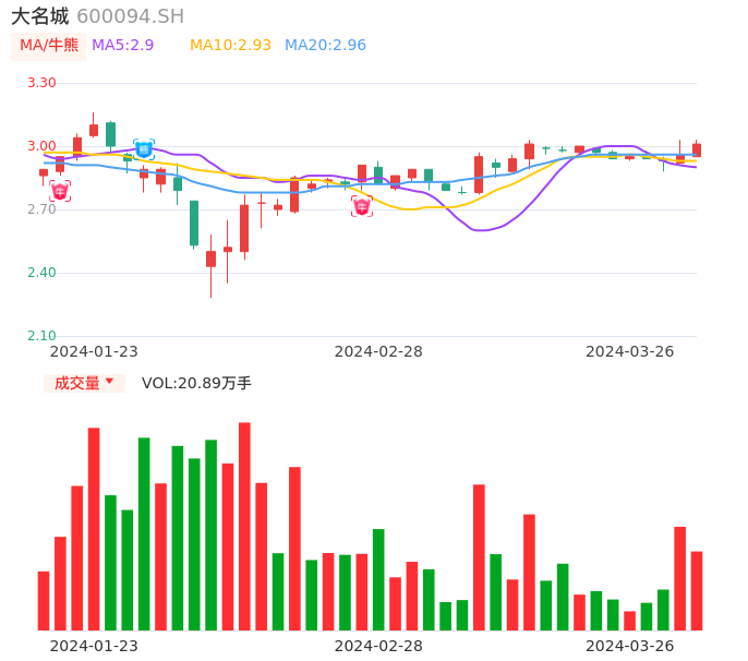03月26日,大名城收报3.01,股价涨幅1.69%,成交金额6256.28万元,换手率0.92%。