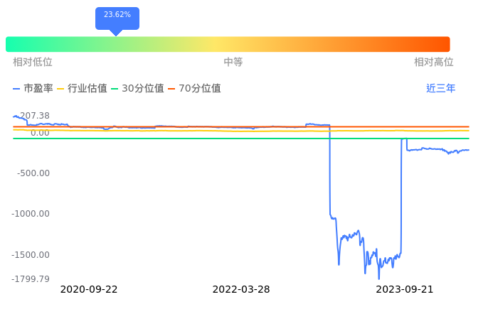 2023年09月21日,湘财股份下跌1.26%收于7.86,今日成交金额1.58亿元。下文将从市盈率PETTM、市净率PB、市现率3个角度去分析公司估值情况。