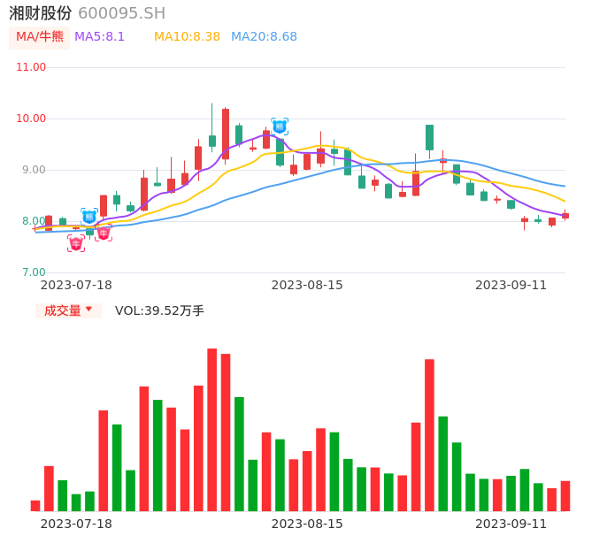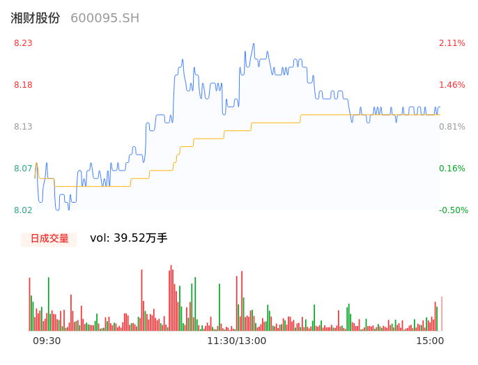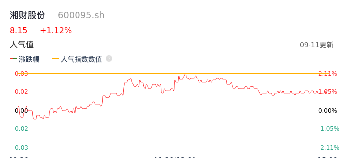 09月11日,湘财股份收报8.15,股价涨幅1.12%,成交金额3.22亿元,换手率1.38%。