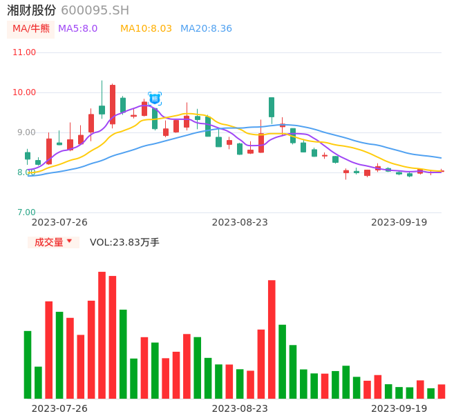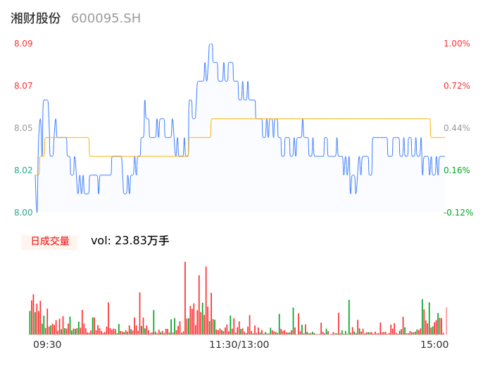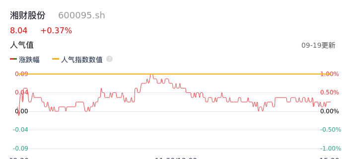 09月19日,湘财股份收报8.04,股价涨幅0.37%,成交金额1.92亿元,换手率0.83%。
