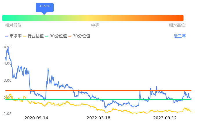 2023年09月12日,湘财股份下跌1.47%收于0.00,今日成交金额0.00元。下文将从市盈率PETTM、市净率PB、市现率3个角度去分析公司估值情况。