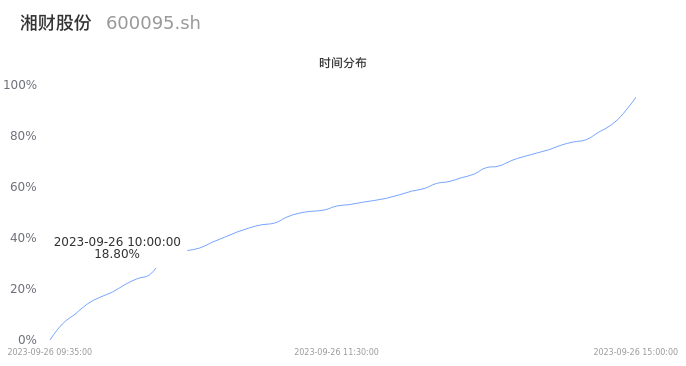 600095湘财股份2023年09月26日成交13.47万手,成交金额1.05亿元,相较昨日缩量11.91万手,换手率0.47%,成交清淡。