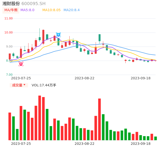 09月18日,湘财股份收报8.01,股价涨幅-0.87%,成交金额1.39亿元,换手率0.61%。