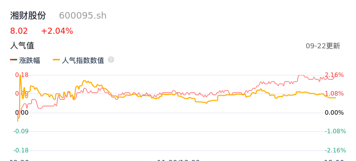 09月22日,湘财股份收报8.02,股价涨幅2.04%,成交金额2.52亿元,换手率1.11%。