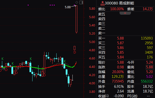 市场热点方面,新能源产业全线大涨,锂电池、储能、光伏、风电等行业板块指数均放量上攻,能源金属、动力电池回收、BC电池、TOPCon电池等细分板块指数均创多年新高。万润新能、易成新能、长华化学、复洁环保等20%涨停,湘潭电化、钒钛股份等亦批量封板。