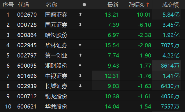 证券板块走弱 国盛证券触及跌停