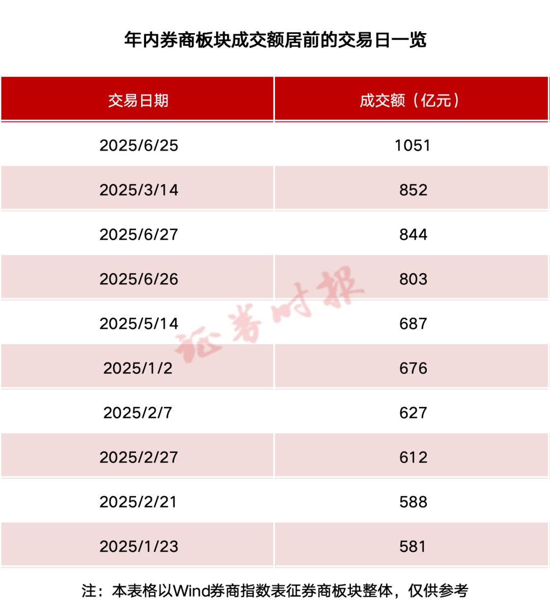 常被视为A股市场行情风向标的券商板块近期频频异动,成交量亦同步明显放大,其中6月25日整个券商板块成交额突破1000亿元,为年内首次。